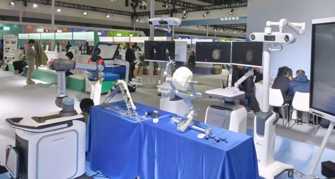 在科交会现场华工展区的手术机器人展品